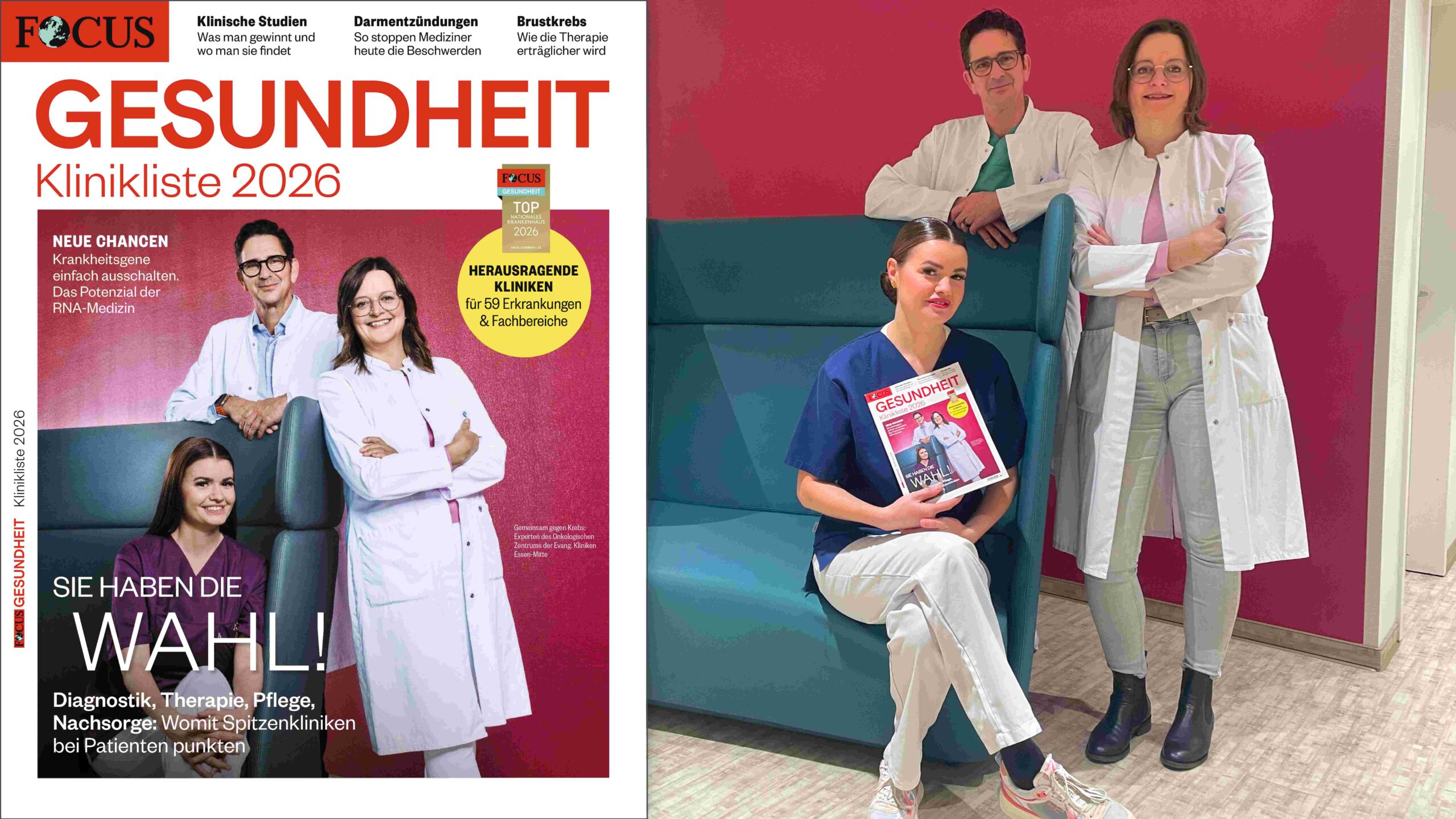 Evang. Kliniken Essen-Mitte mit Top-Platzierungen auf dem Cover der FOCUS-Klinikliste 2026