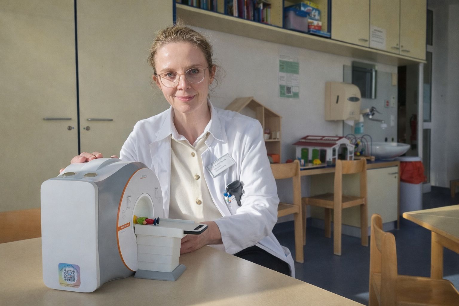 Das neue Spielzeug-Kinder-MRT ermöglicht es nun, die Untersuchungssituation mit den Kindern realitätsnah zu besprechen. Per Knopfdruck ertönen dieselben Geräusche wie bei einem echten Gerät. Kinder können spielerisch erleben, was sie erwartet, Fragen stellen und Unsicherheiten abbauen.