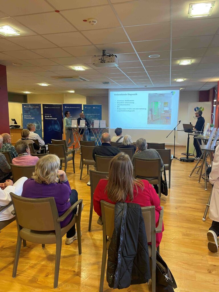 In einer offenen und geschützten Atmosphäre nutzten die Teilnehmenden die Gelegenheit, sich umfassend über Lungenkrebs, moderne Diagnoseverfahren und aktuelle Behandlungsoptionen zu informieren. Ärztinnen und Ärzte verschiedener Fachrichtungen erklärten medizinische Hintergründe verständlich und gaben Einblicke in innovative Therapieansätze.